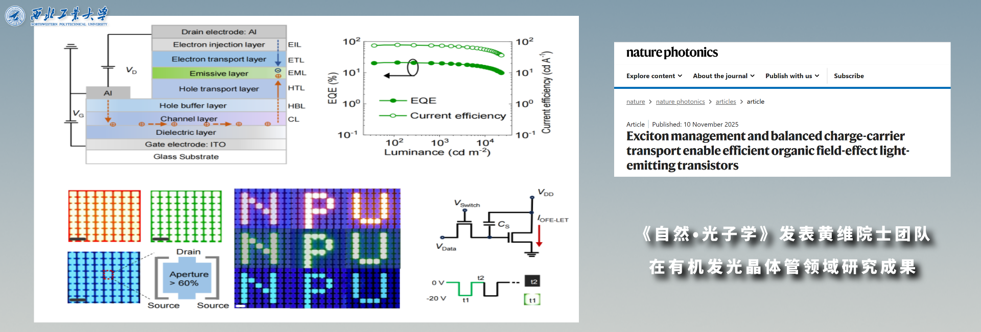 近日,柔性电子全国重点实验室黄维院士团队在高性能有机发光晶体管领域取得重要研究进展。研究团队成功研发出高效率、低功率损耗的兼具水平和垂直结构的有机...