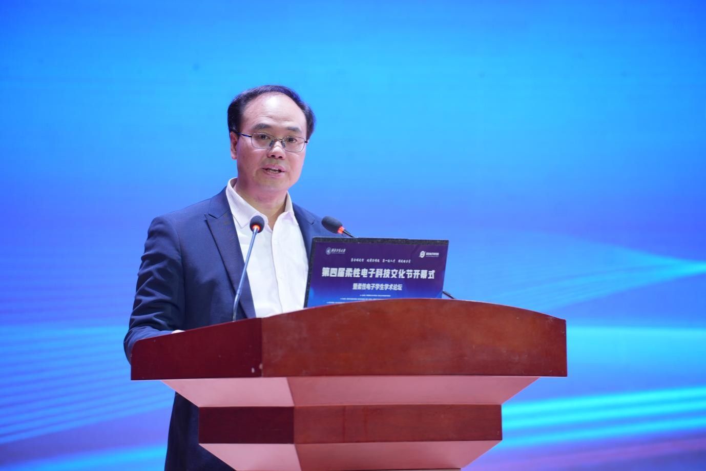 11 月 20 日下午,第四届柔性电子科技文化节开幕式暨柔性电子学生学术论坛在长安校区南山艺堂举行。中国科学院院士、校学术委员会主任、柔性电子全国重点实验室主任黄维,党委常委、副校长王伶出席活动并致辞。中山大学、厦门大学、电子科技大学、西安电子科技大学等省内外 10 余所高校的 200 余名师生齐聚现场,党委学生工作部、校团委和研究生院相关领导参加活动。