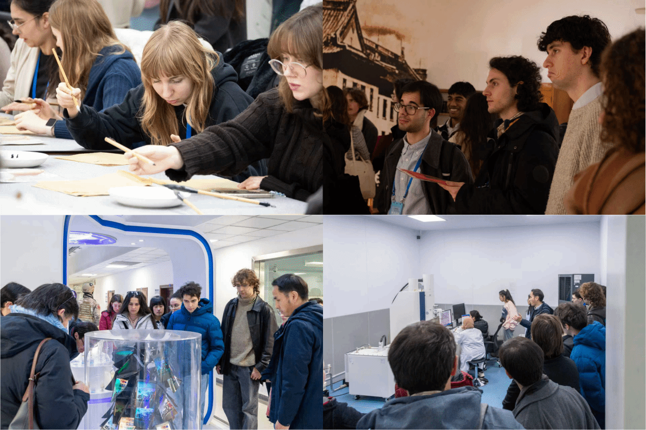 会后,欧洲学生代表前往西北工业大学长安校区,沉浸式体验了中国传统文化课程,并依次参观了校史馆、军工素质教育实践中心及柔性电子研究院实验室。从笔墨丹青到工程科技,从传统智慧到前沿创新,多维度、沉浸式的参访让欧洲青年得以真切感受中华文化的深厚底蕴,同时也近距离领略了中国高校的科研实力与创新风貌。