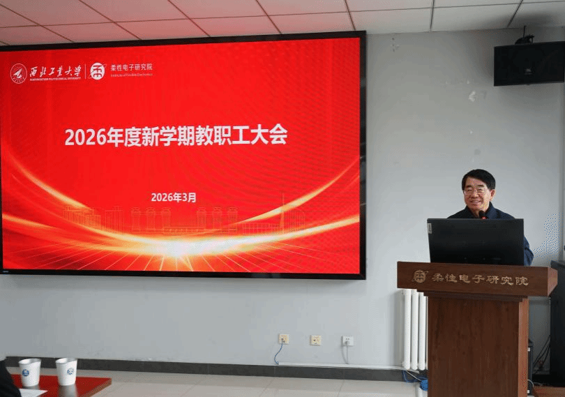 3月19日上午,柔性电子研究院召开2026年新学期全院教职工大会,传达学习学校2026年寒假务虚会、春季新学期中层干部会会议精神并安排部署“十五五”规划与2026年度研究院重点工作。校学术委员会主任、中国科学院院士黄维、研究院党政领导班子及全体教职工参加了会议。会议由研究院党委书记高建伟主持。