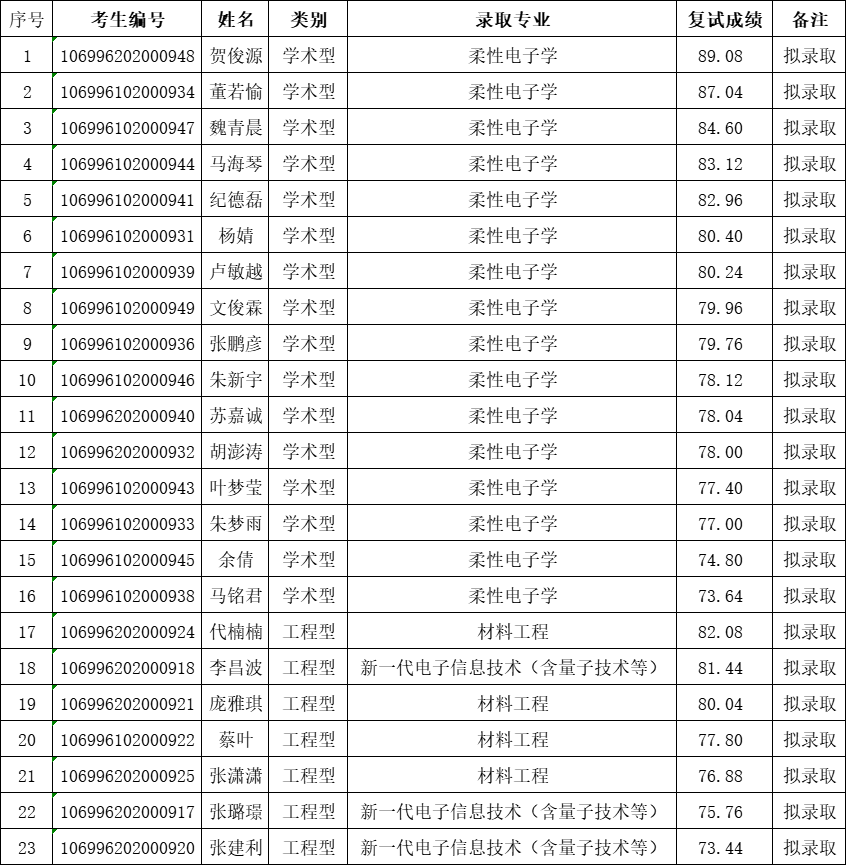 现将我院2026年博士研究生第一次复试考核结果公布如下,详见附件。公示期为7日,如有异议,请联系柔性电子研究院人才培养办公室。