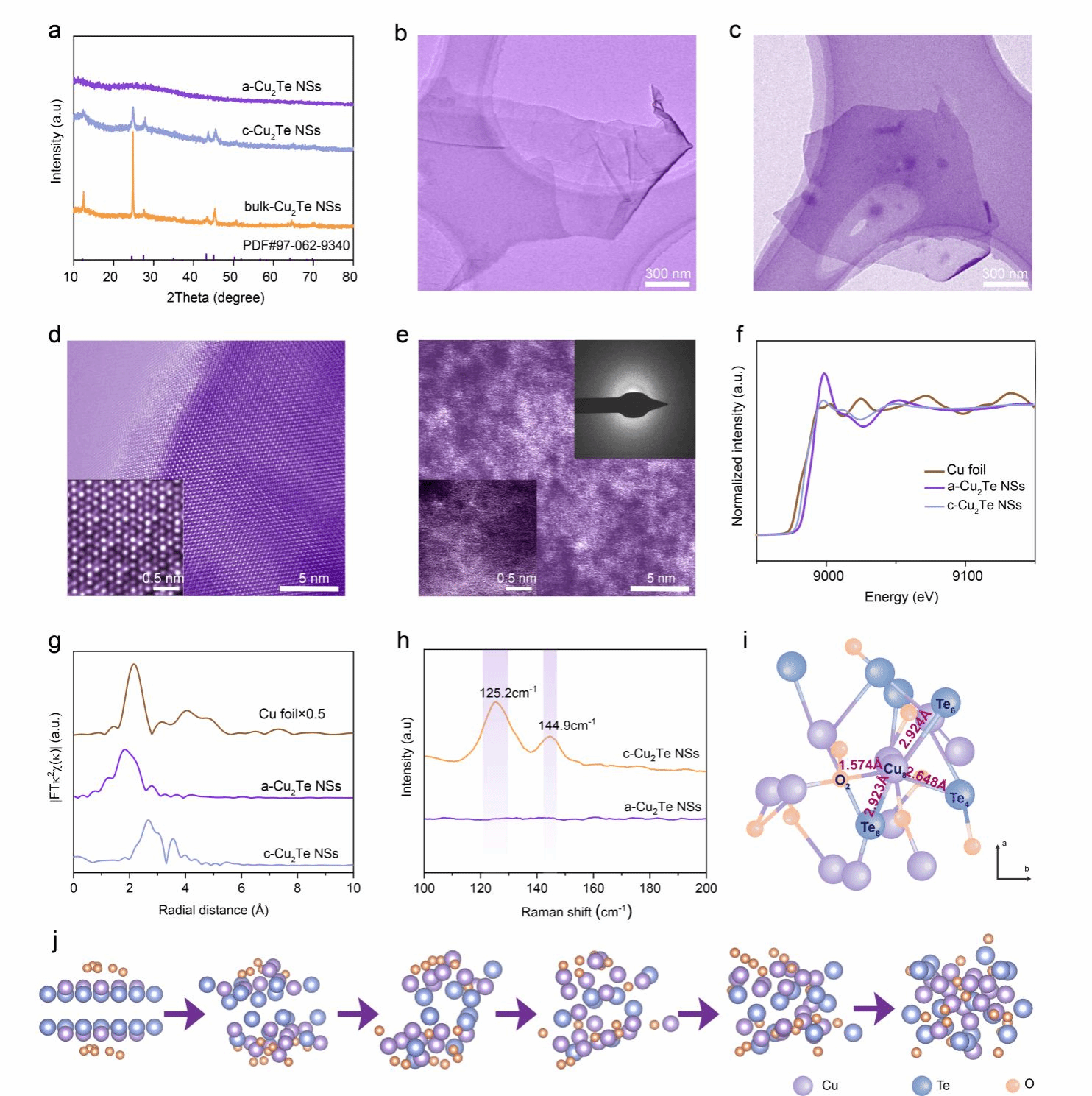 图1. 晶形Cu2Te NSs与非晶Cu2Te NSs的制备与表征