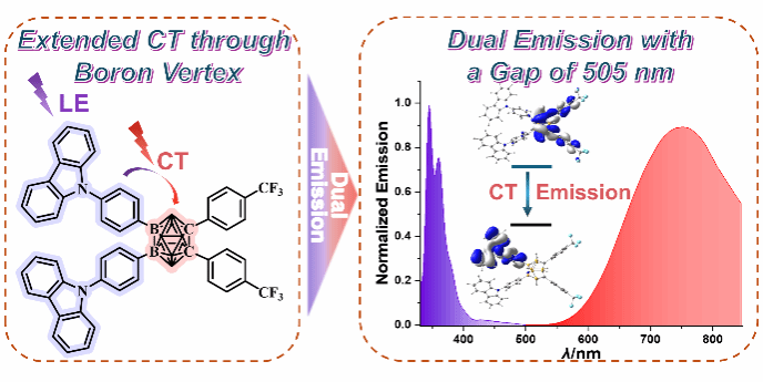 该论文从根本上拓展了碳硼烷基功能材料的设计范式,颠覆了长期以来以碳为中心的碳硼烷发光观点,揭示了一种激活硼顶点参与电子共轭的新策略,为开发基于邻碳硼烷的高性能双发射材料开辟了新途径。为未来设计多位置、多功能协同的碳硼烷新材料打开了无限想象空间。